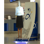 A life-sized projection of a person, that provides information. The projection is shaped just like the image projected and looks as a real person.